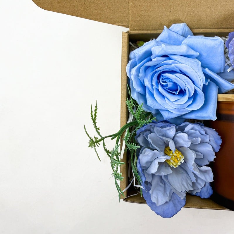 Một hộp quà sang trọng mang sắc xanh dịu mát và hương gỗ trầm ấm Enchantwood, gợi cảm giác bình yên pha chút bí ẩn. Kết hợp cùng hoa decor tinh tế và diêm đốt tiện dụng, Blue Enchant không chỉ là quà tặng mà còn là thông điệp an lành và trân trọng.