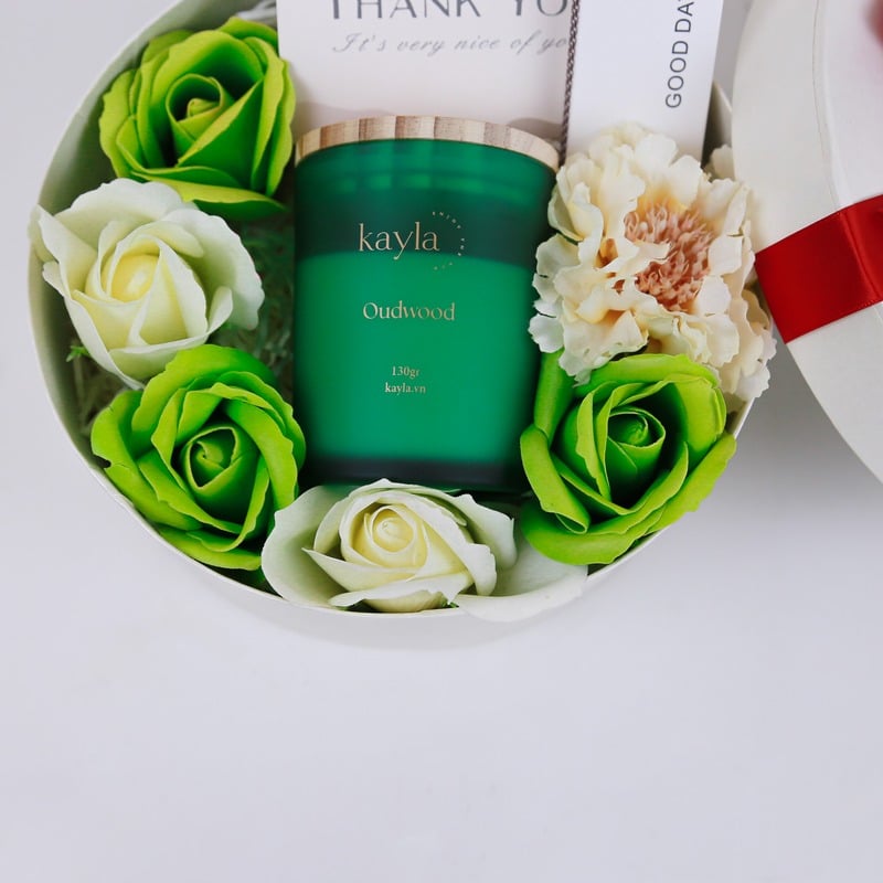 Đầu bông hoa sáp – biểu tượng của sự lãng mạn và bền lâu, giúp tổng thể set quà vừa sang trọng vừa ý nghĩa.