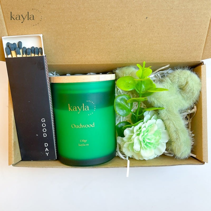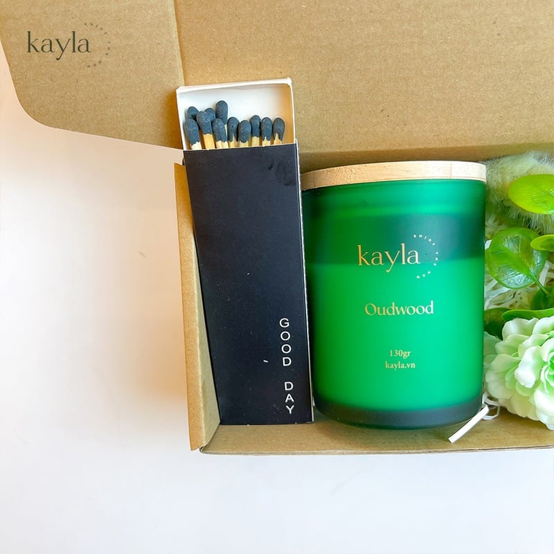 ✨ Nến thơm Kayla Oudwood 130gr kèm diêm đốt: Hương gỗ trầm mạnh mẽ, sâu lắng, mang đến sự sang trọng và bình yên cho không gian sống.