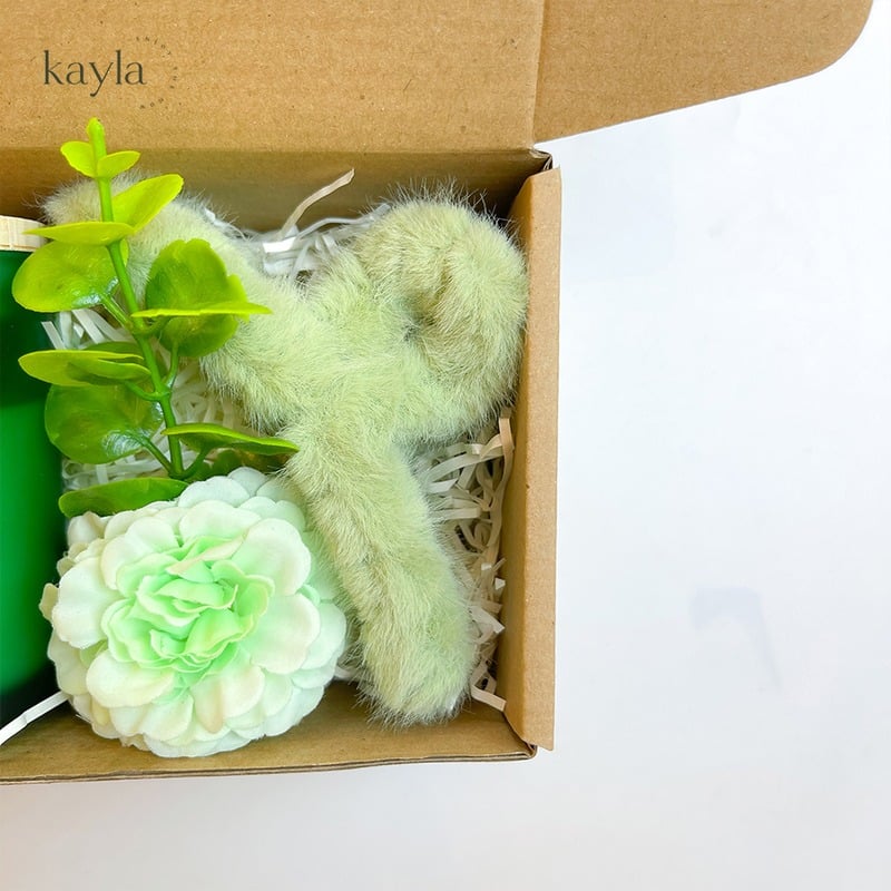 ✨ Kẹp tóc lông màu xanh lá: Mềm mại, dễ thương, như một điểm nhấn nhỏ đầy gần gũi và tinh nghịch.