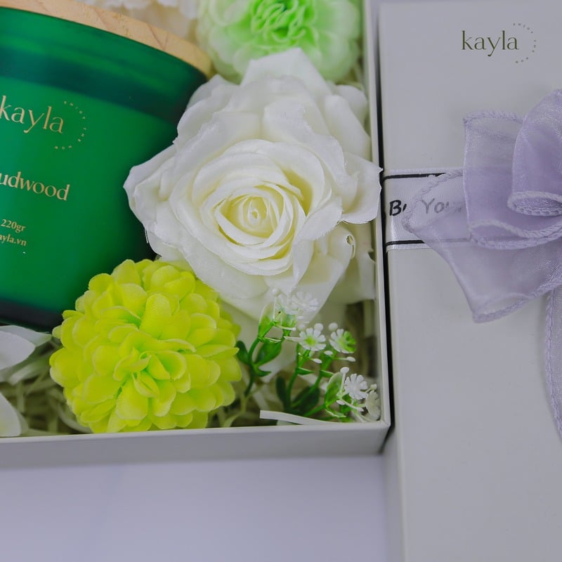 Tất cả được sắp đặt gọn gàng trong hộp quà vuông 20x20x8,