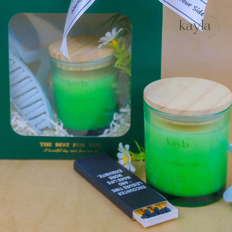 Nến thơm Leather Oak – hương gỗ trầm ấm, dễ chịu, mang lại cảm giác thư giãn và sang nhẹ