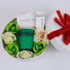 Hoa vải decor sắc xanh nhẹ nhàng – điểm nhấn lãng mạn, tươi mát, khiến tổng thể set quà trở nên hài hòa và ấm áp hơn.