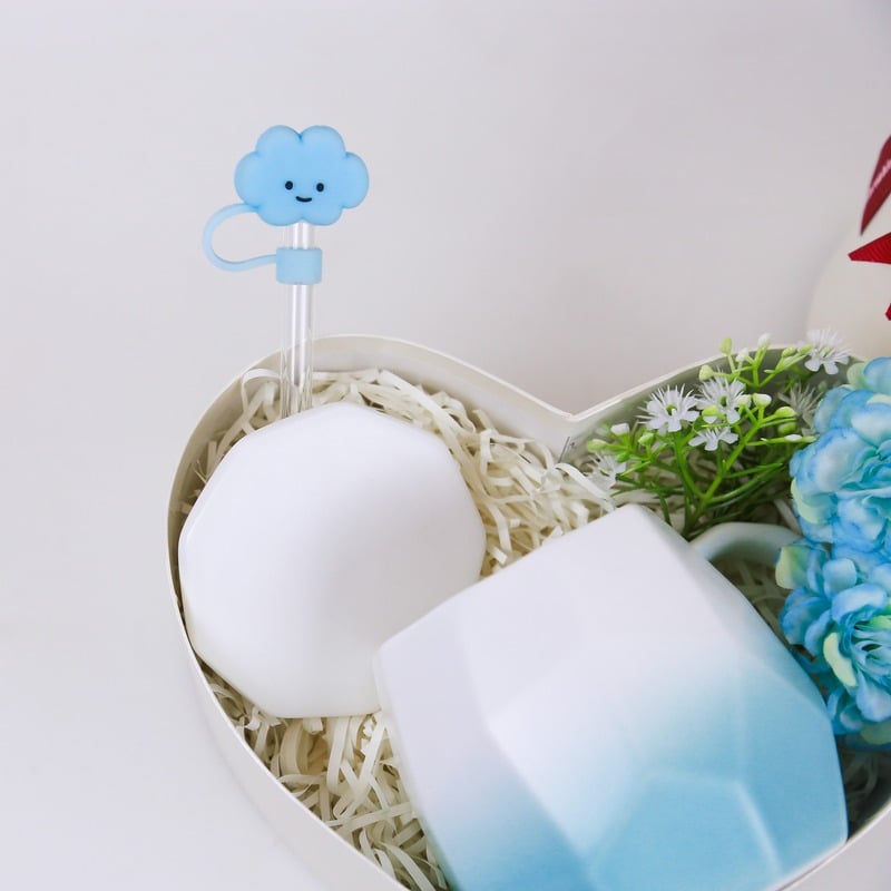 Ly sứ hình đám mây kèm nắp và ống hút thủy tinh – phụ kiện tiện dụng, dễ thương, mang đến niềm vui nhỏ bé cho từng khoảnh khắc thưởng thức trà, cà phê hay cacao nóng.