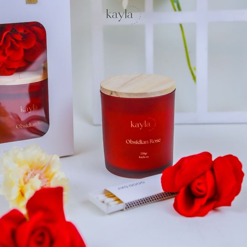 Nến thơm Obsidian Rose kèm diêm đốt – hương hoa hồng trầm ấm, quyến rũ và lãng mạn, như một bản tình ca ngọt ngào trong không gian thư giãn.